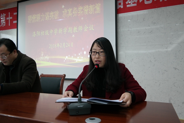2月24日上午,洛阳初级中学全体教师集中在大会议室,召开了2018年春季新学期第一个教师会议。